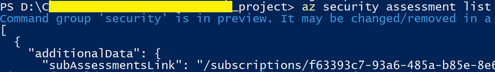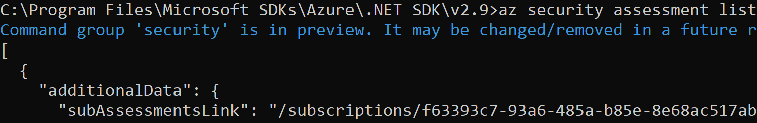 az security: 'assessment' is not in the 'az security' command group. See 'az security --help'. If the command is from an extension, please make sure the corresponding extension is installed. To learn more about extensions, please visit https://docs.micro