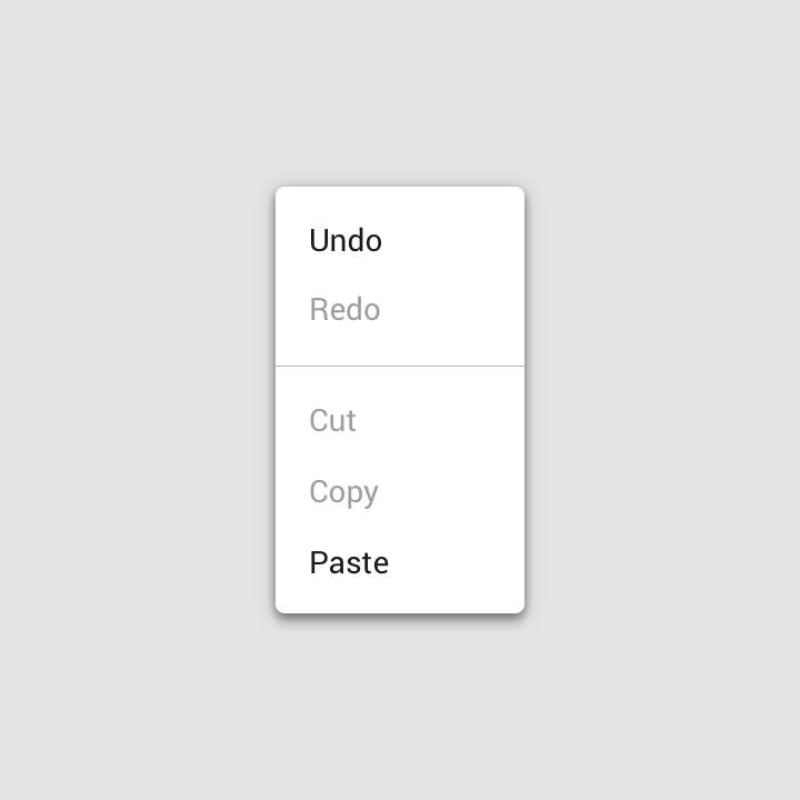 善良的人!告诉我如何使这样一个基本的东西,如一个禁用的菜单项与适当的外观,在例子中的材料设计?以编程的方式。提前谢谢你