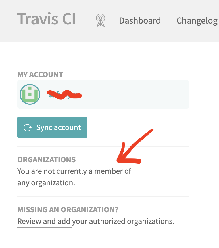 但是当我去travis-ci设置时,它仍然告诉我You are not currently a member of any organization。