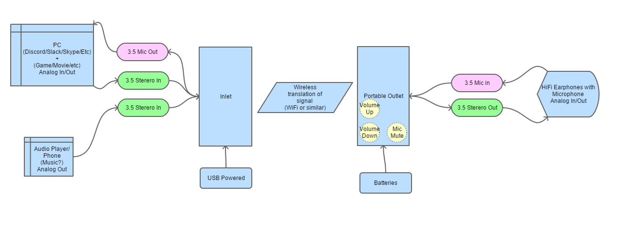问题定义:当前的蓝牙实现不允许简单地支持高质量的音频(耳机模式)和双向音频转换(耳机模式)。此外,即使有人设法设置这个配置,这在硬件/软件上有很大的限制,也没有办法同时处理来自两个不同音频设备的声音输入。所以,从技术上讲,一个人不能只玩游戏,在不和谐的情况下交流,也不能随意地听一些音乐,除非他被绑在一些USB捆绑的耳机上。通常都很糟糕,或者很贵。或者两者都有。