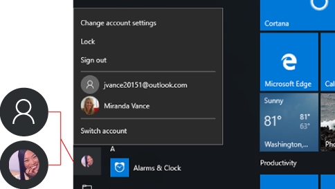 若要退出Windows 11,请选择Start。选择帐户图标(或图片),然后选择Sign out。