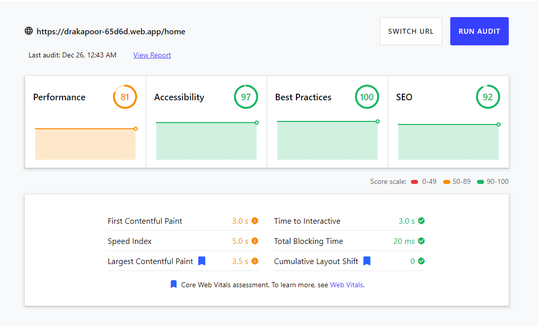 最后,但同样重要的是,如果你已经发布了你的网站-你也可以有灯塔,以审计你的网站在这里。所有的测试都是使用模拟移动设备运行的,控制在一个快速的3G网络和4倍的CPU减速。