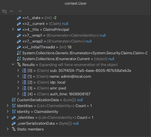 await HttpContext.SignInAsync(isuser, props);现在,用户包含所有附加声明,但是如果我删除一个声明JWT令牌被刷新,但是,用户标识仍然包含旧值,为了刷新身份,我需要显式地再次登录用户(这是不合适的),我如何解决这个问题?