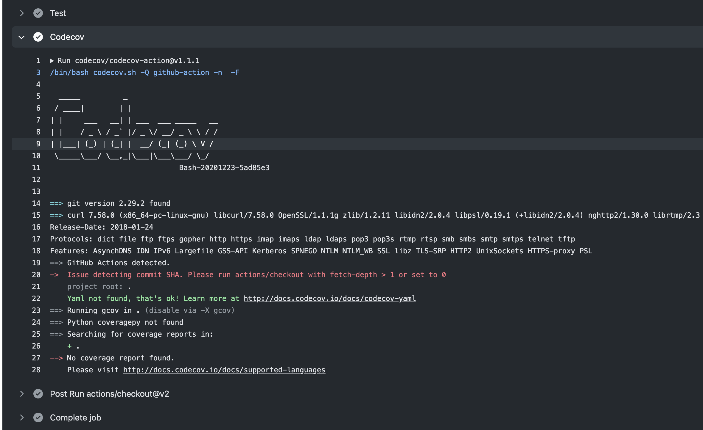 },然后由codecov提供的bash脚本将上传您的报告,没有任何问题。