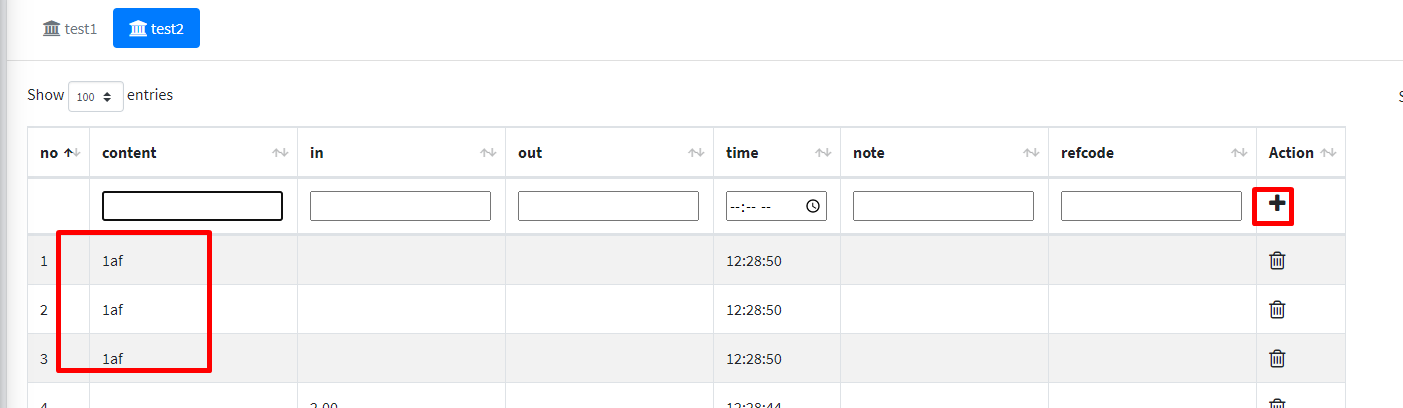 }问题:我已经使用引导导航选项卡创建了一个选项卡。对于每个选项卡,它将有bankID,这取决于用户的单击,并将传递bankID并呈现datatable。上面的代码工作得很好,但是它将面临一个重复的问题。这是否意味着,如果用户随机播放并单击选项卡1(test1)或选项卡2(test2),当他们试图插入数据时,就会出现重复输入问题。我尝试在console.log的onClick函数中,它将有多个控制台。这将取决于用户单击该选项卡的时间。例如,当第一次单击选项卡2(test2),然后单击选项卡1(test1),然后再次单击选项卡2(test2)时,它将有2个重复的enter。有人能帮忙吗?我在这个问题上花了很长时间: