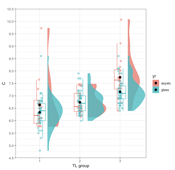 但是,我希望TL组和yr的每一个组合都是不同的颜色,就像人们在基盒图()中所做的那样: