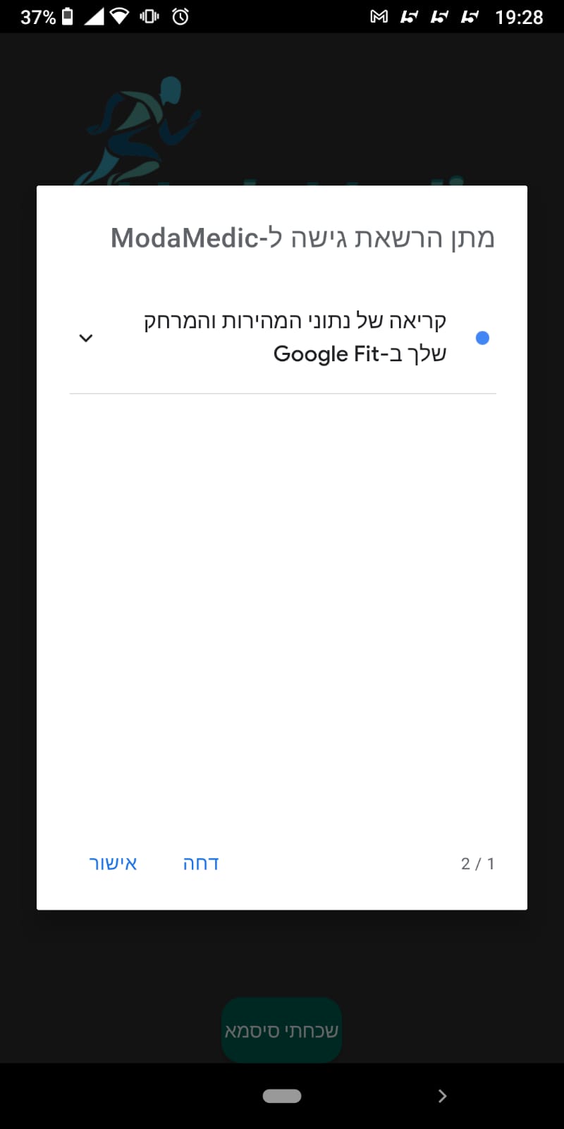 不知道为什么第二个屏幕不显示,我必须获得这些权限来管理使用google-fit收集的数据。