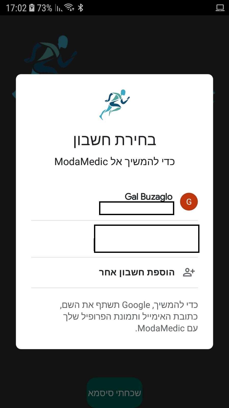 }我得到的第一个屏幕是选择google帐户: