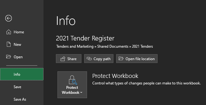 然而,我注意到,如果我去文件>信息,有一个按钮“打开文件位置”,它直接带我到文件的本地路径文件夹,它告诉我这个信息在excel的某个地方,必须有一个方法来检索它,我没有在我的任何搜索中看到过这个引用,在指出它之后,有人对如何或是否可以工作有任何想法吗?我试着记录一个宏,但它根本没有注册它。