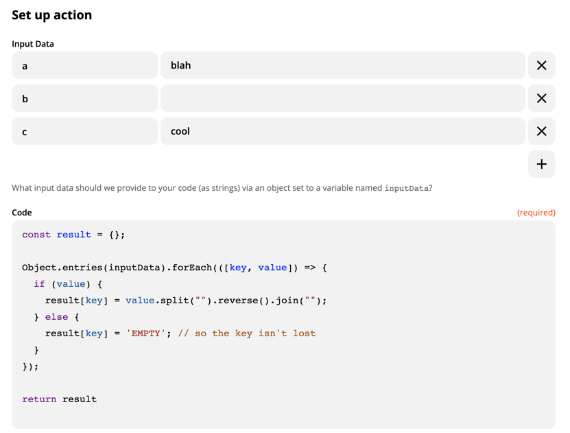 编者注:编辑后,Stackoverflow不允许我重新保存原来的标题:Reverse words with Code by Zapier (Javascript/Python)。不知道为什么。