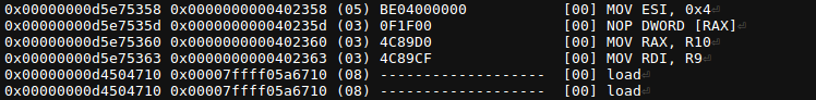 对于验证步骤,我使用相同的用户指令方法,将linux内核映像的objdump与跟踪输出进行比较。但是,当发现内核符号指令时,我注意到了一些differences...mostly。这是跟踪的输出:
