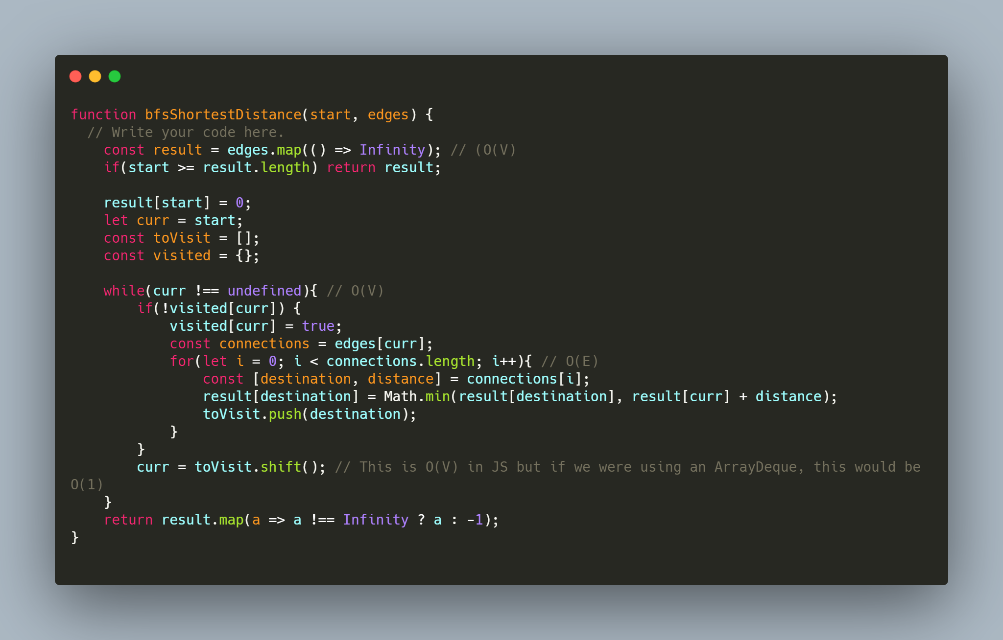 我一直在练习各种算法,我刚刚完成了Dijkstra算法来计算图上节点之间的最短距离。在完成了利用索引minHeap的练习之后,我还完成了利用BFS (附带的解决方案)的练习。这让我想到了几个问题: