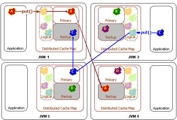 要更好地理解分布式缓存如何在一致性中工作,请参阅:一致性缓存简介。(图片是从那里获取的。)