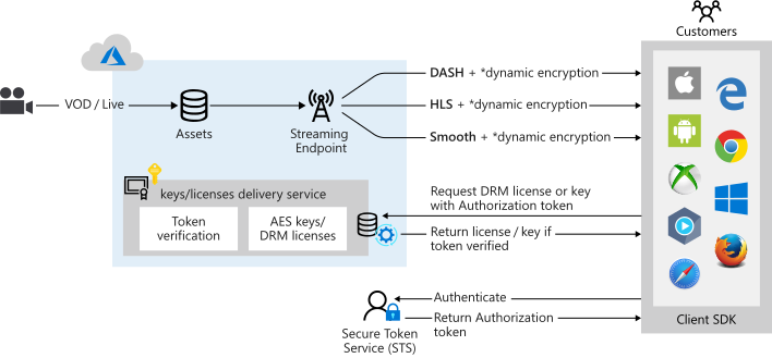 这的确是个复杂的课题。你在用哪种语言?我们的.NET样本中有一些基本的DRM流。它展示了如何进行基本加密、许可证设置、内容密钥策略以及如何生成测试JWT令牌。在实际生产中,您需要构建auth流来生成客户端所需的正确的JWT令牌。