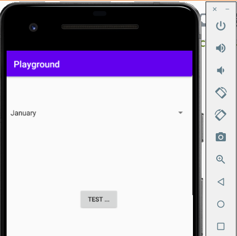 在物理装置上一切都很好。旋转器在单击时展开它的列表。这个按钮也能用。