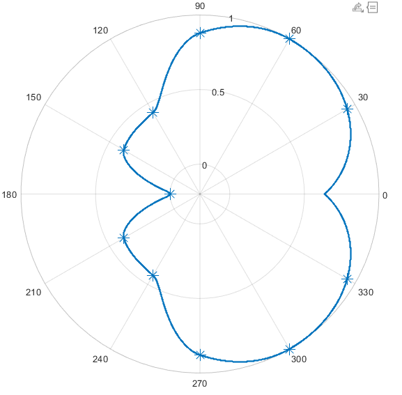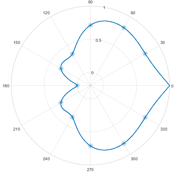 polarplot( ainterp, pchip(a,b,ainterp), 'linewidth', 1 )