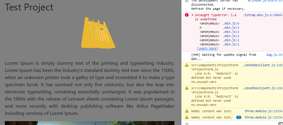 Visit https://reactjs.org/link/error-boundaries to learn more about error boundaries.但是,当我将画布部分复制到我的Home Component时,它将毫无问题地呈现我的STL文件,然后它也会在我的另一个页面上加载我的STL文件。