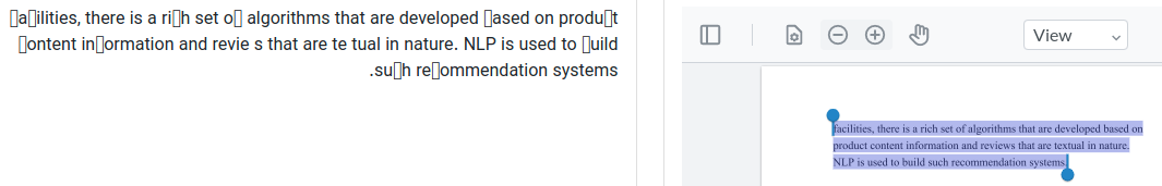 文档似乎确实会导致不正确的提取。提取不是由PDF规范定义的,所以每个查看器处理的情况几乎没有什么不同。在您的情况下,文档中可能包含了格式错误或不完整的字体或unicode映射。我们在我们的核心组件中添加了多个修复程序,使用这些补丁,正确地进行了提取。不幸的是,目前的WebViewer版本还没有包括这些修复。我们不能给出确切的时间表,什么时候可以修复WebViewer,但至少应该是我们下一个主要版本的一部分。现在,我想看看您是否可以重新创建文档,看看这是否有帮助。我们看到和测试的大多数文档在提取方面都没有问题。
