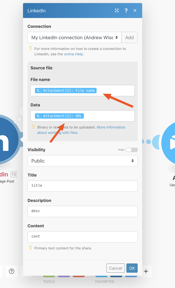 这些文档仅限于领英在Integromat:https://support.integromat.com/hc/en-us/articles/360006248613-LinkedIn上的集成
