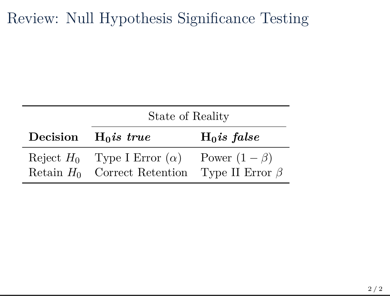 ## Review: Null Hypothesis Significance Testing