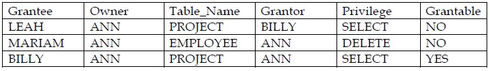 GRANTEE OWNER TABLE_NAME GRANTOR PRIVILEGE GRANTABLE