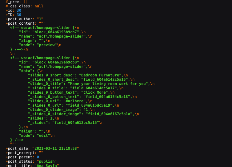 }我也有,块/主页-滑块-区块.小枝文件。在管理面板中,有了古腾堡编辑器,一切都很完美。但是在前端,post内容不能正确地工作/呈现。