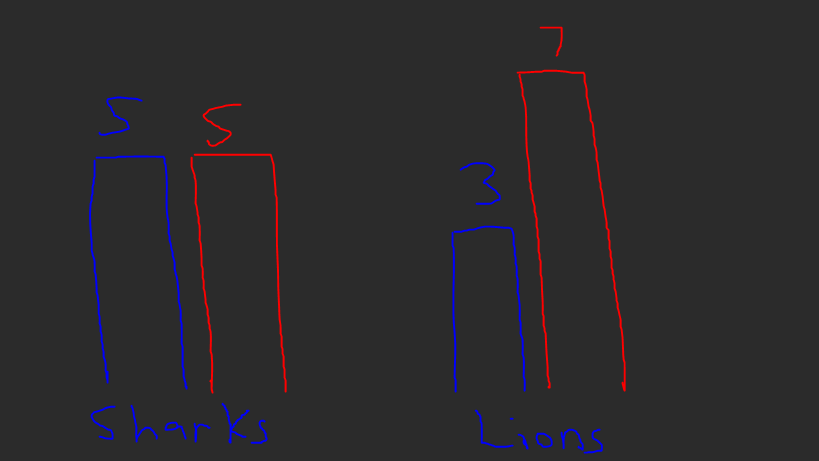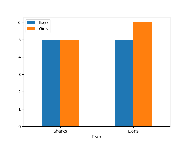 data = {'Team': ['Sharks', 'Lions'], 'Boys': [5, 5], 'Girls': [5, 6] }