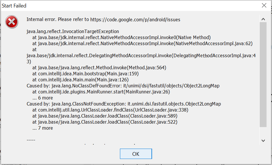 最新发布的版本解决了这个问题,Android studio正在正常运行。