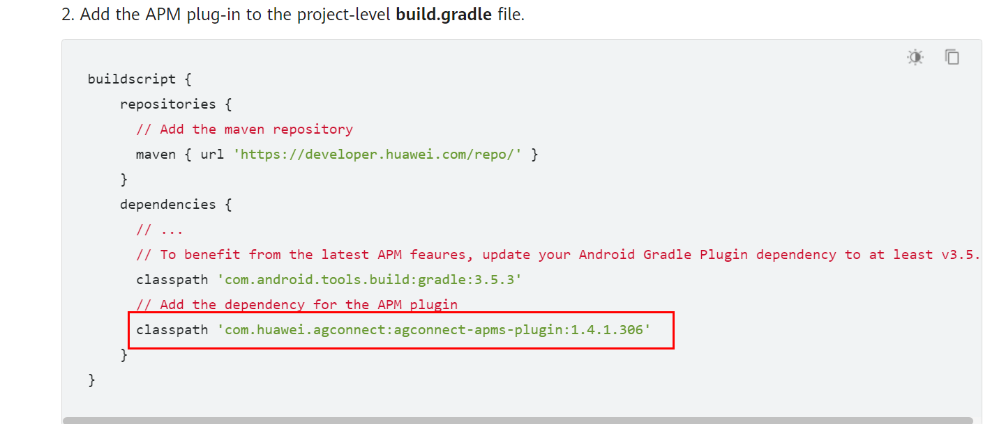 问题可能是由于您的APM插件。尝试将其更改为classpath 'com.huawei.agconnect:agconnect-apms-plugin:1.4.1.306'可以解决您的问题。