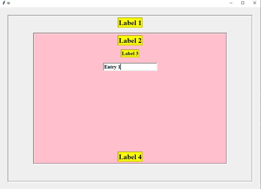 lbl_4 = Label(f2, text='Label 4', bg='yellow', bd=2.5, relief=GROOVE, font=('Times New Roman',20,'bold'))