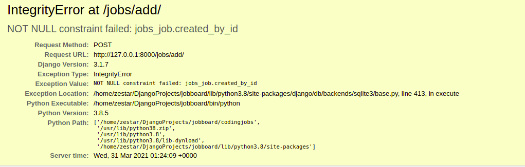我试图使用户能够添加作业,在填写表单后,我得到了该错误。这是我的代码: