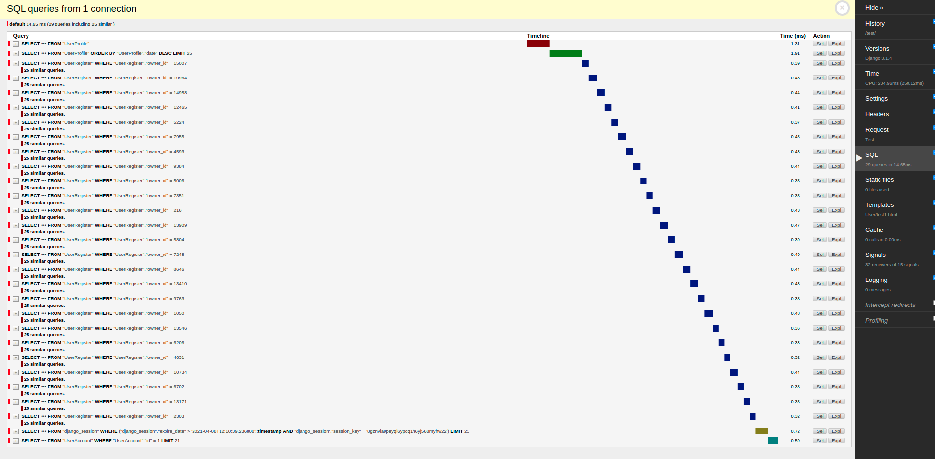 return render(request, 'User/test1.html')return JsonResponse(data)是我想返回的内容,但是现在我需要使用debug_toolbar,所以我返回到一个空页面以方便阅读debug_toolbar。
