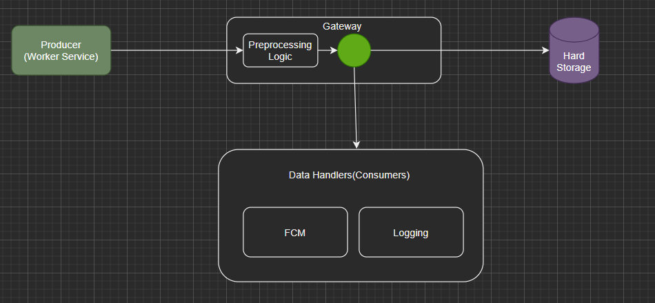 在上面的图片中,您的网关可能是一个控制台应用程序,它运行从套接字读取的循环或响应http请求的web。在任何一种情况下,根据它接收到的读数,都可以将记录发送到数据库或FCM外部系统,或日志记录系统。