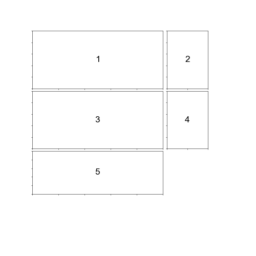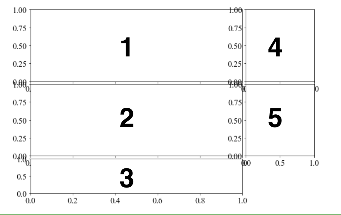 我认为这是matplotlib的半图形合成函数的一项工作,即subplot_mosaic函数。这可以在matplotlib > 3.3中找到。您需要为5个面板定义基本布局,然后根据需要的行/列生成完整的布局。据我所见,这将是相当复杂和困难(虽然不是不可能!)由subplot2grid或Gridspec或任何其他方法创建。