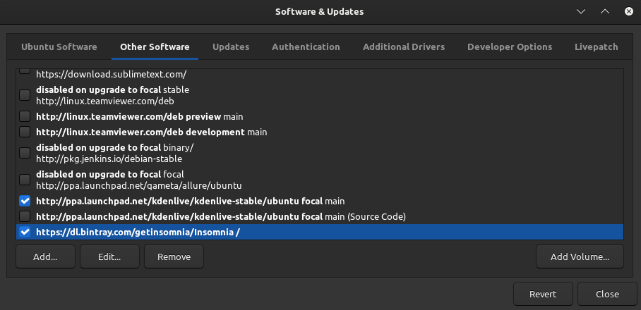 打开“软件与更新”,然后转到“其他软件”选项卡并取消对APT的检查。