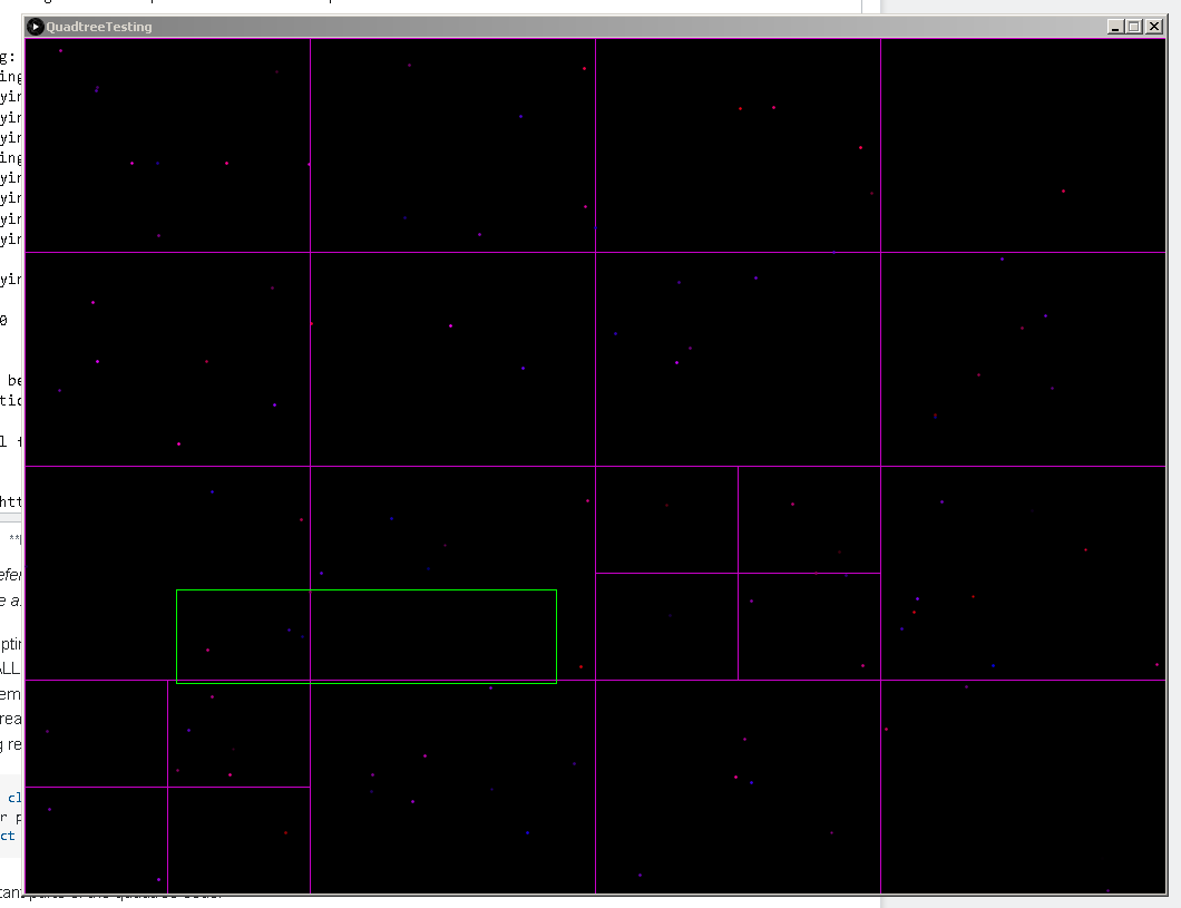 我试图写一些通用的四叉树代码,用于物理模拟和游戏设计。首先,它返回四叉树内容中的所有点,这些内容被搜索区域完全包围。在添加了一堆print()语句来说明这个过程之后,我设法解决了这个问题,但是现在我有了一个新的问题,我似乎搞不清楚。由于某些原因,当我查询矩形区域内的“Placeable”四叉树时,我要么得到一个完全正确的结果,但更多的情况下,我没有得到任何返回。Placeable的定义如下: