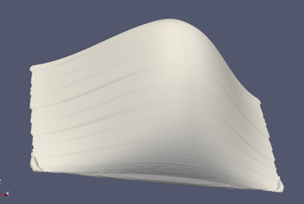 我使用python中的Open3D库从三维云点创建表面网格。我有很多情况下,域是相似的彼此。在大多数情况下,Open3D在创建封闭曲面网格方面做得很好,但在很少情况下,它从域创建了一些离群点网格。是open3D表面网格的代码。