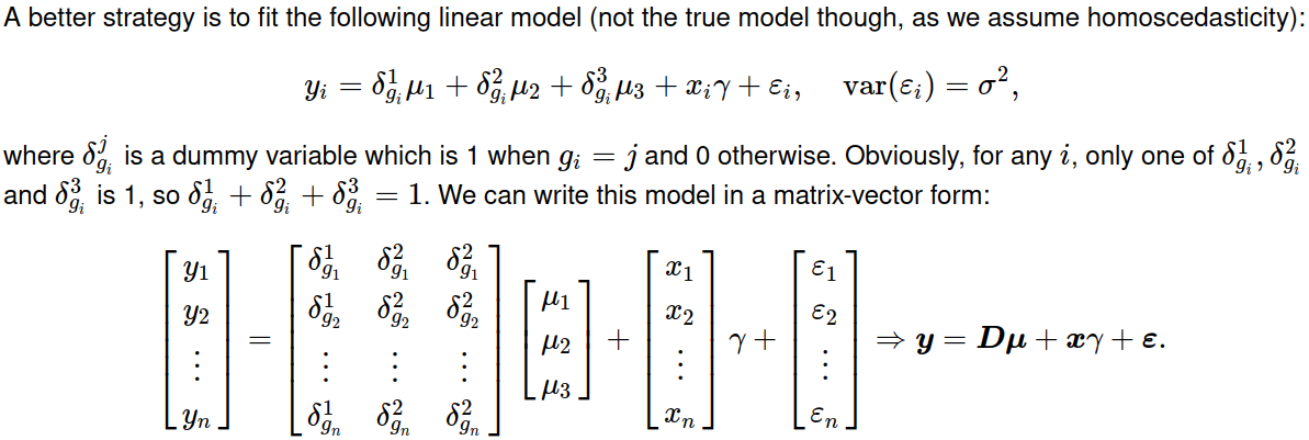 fit.treatment <- lm(y ~ f + x, dat, contrasts = list(f = "contr.treatment"))