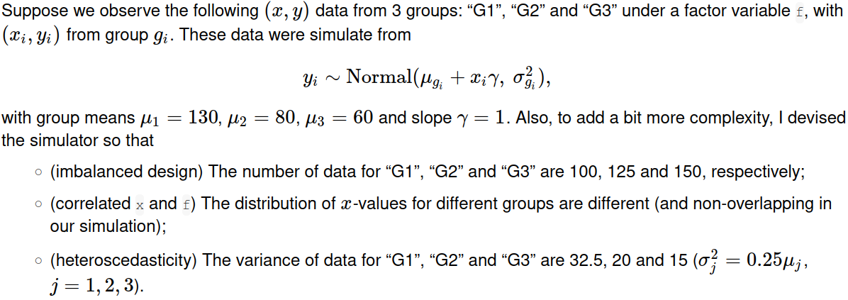 ## numerical covariate 'x' with slope = 1