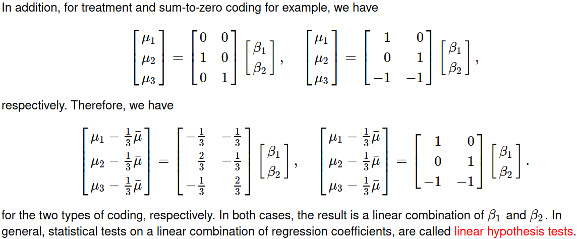 linearHypothesis(fit.sum, hypothesis.matrix = wt.sum0) ## identical to above从某种意义上说,这个答案是我以前几个答案的总结。
