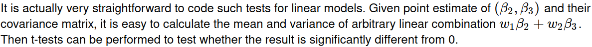 ## linear combination and their standard errors
