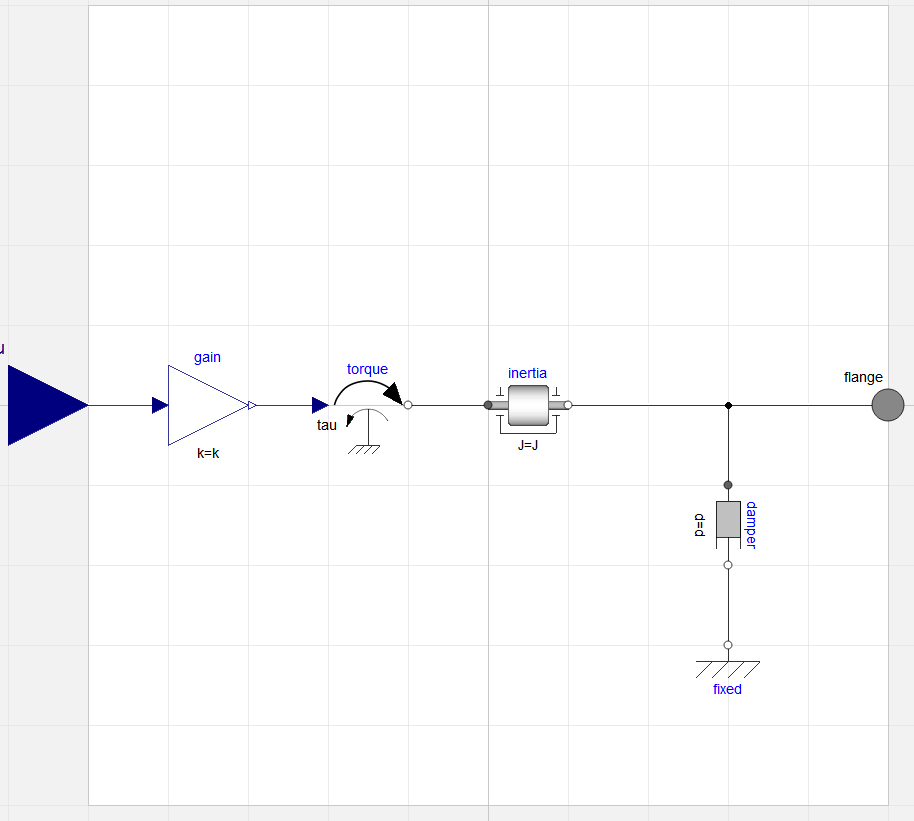 Modelica.Mechanics.Rotational.Components.InertiaModelica.Mechanics.Rotational.Components.DamperModelica.Mechanics.Rotational.Sources.Torque和Modelica.Blocks.Math.Gain相结合