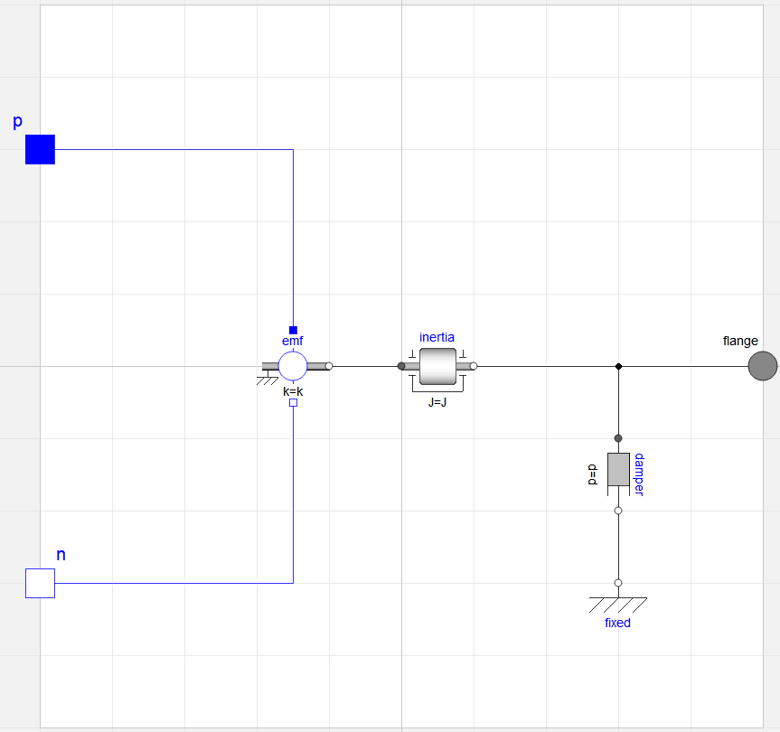 connect(inertia.flange_a, emf.flange) annotation (Line(points={{30,0},{10,0}}, color={0,0,0}));