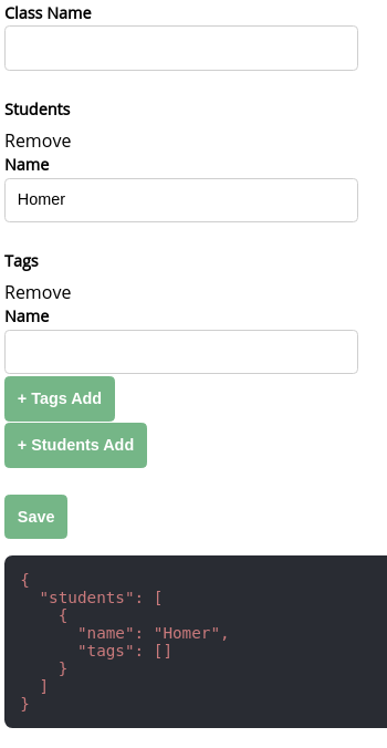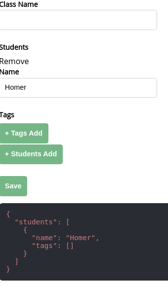 如您所见,有一个预填充的特技表演数组,其中学生有一个名字,但没有标签。但是表单显示了一个标记,这里提供了一个空数组。