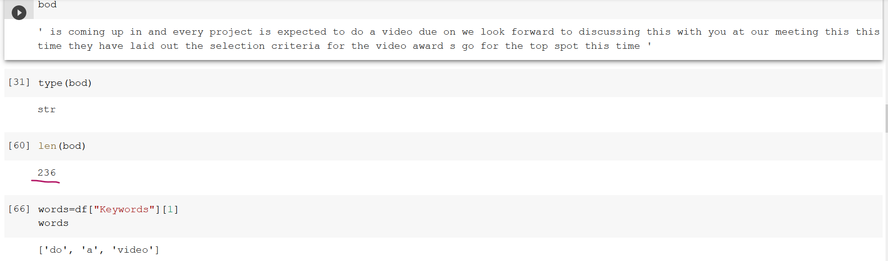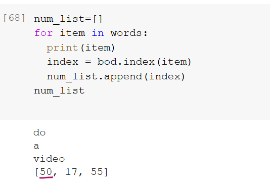 这是我用来获取“bod”中单词索引的代码(如上面所示)。