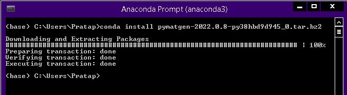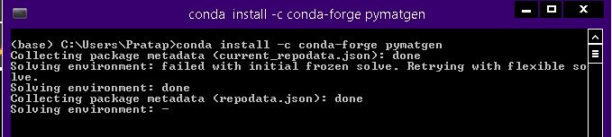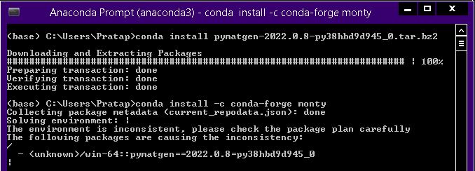 我渴望开始材料模拟。我面临的问题,试图安装Pymatgen与Anaconda。以下是我所做的事。我正在使用Win 8.1 x64,Python3.8。