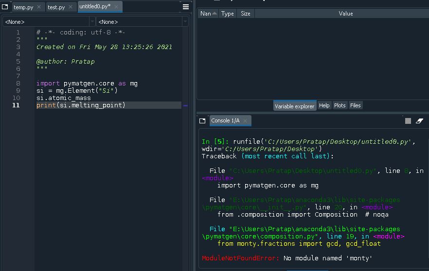 conda create -n pmg -c conda-forge pymatgen如果您计划在Spyder中使用它,也包括创建时的spyder-kernels包。一定要阅读""上的整个Spyder文档。