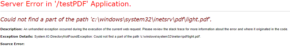 或者您可以执行一个Server.MapPath("~/pdf/light.pdf")来获取虚拟路径。