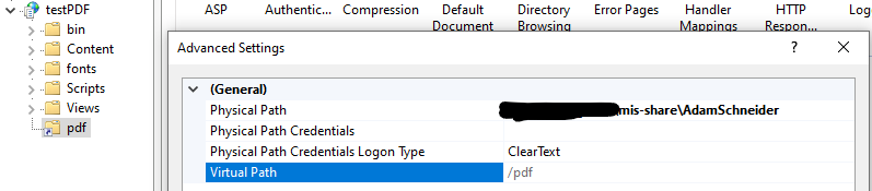 但是,我正在尝试使用IIS中的虚拟目录,该目录指向用户可以访问的文件的网络共享。