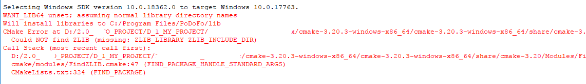 另外,我需要做些什么才能将zlib.lib与podofo连接起来?因为在使用Cmake构建podofo时,我得到了以下错误: